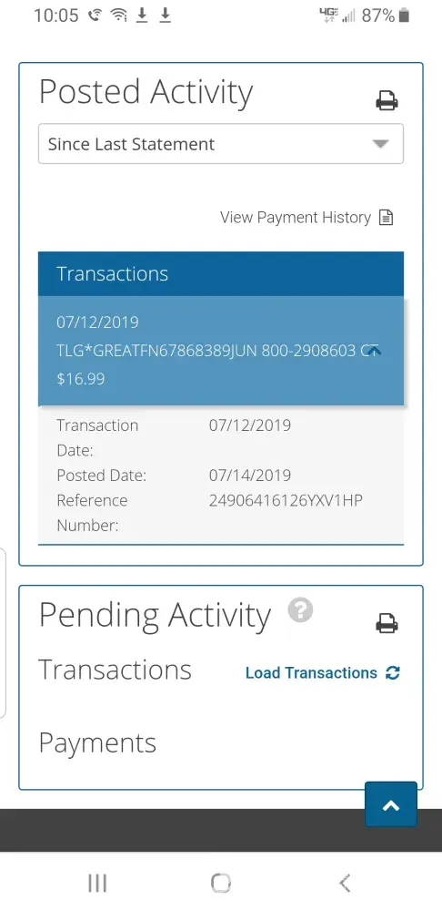 Each month I have seen a debit of $16.99 to TLG*GREATFN64137630FEB800-29 (this is from 3/2/2020).