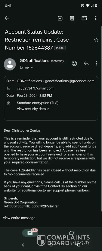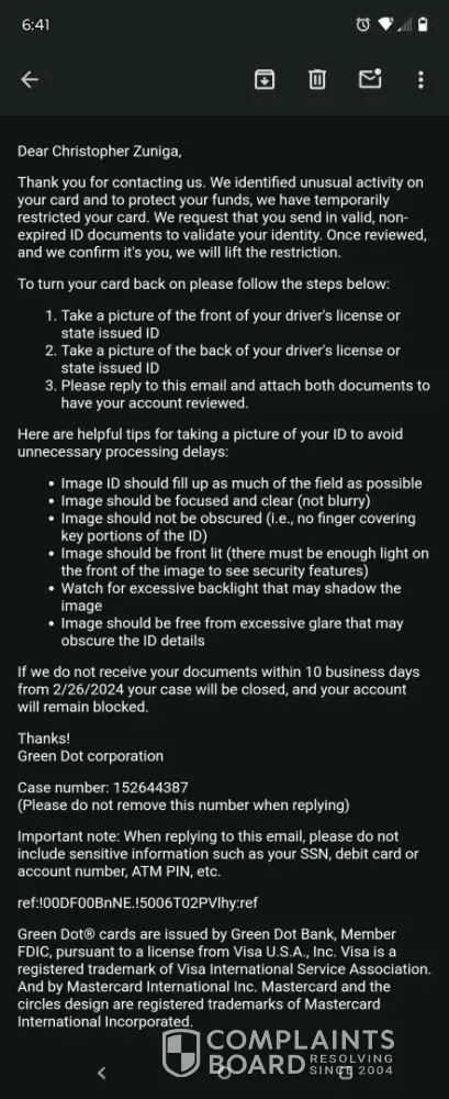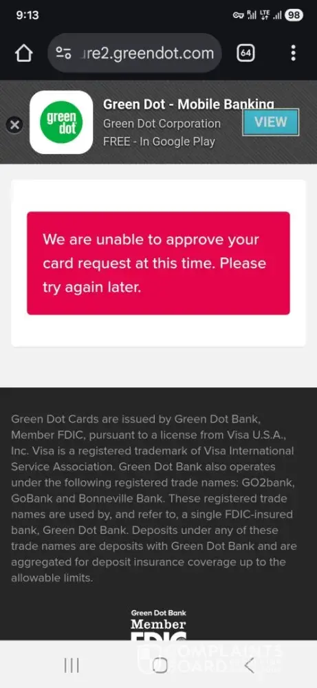 Read full complaint and 1 commentGreen Dot Bank SB tg