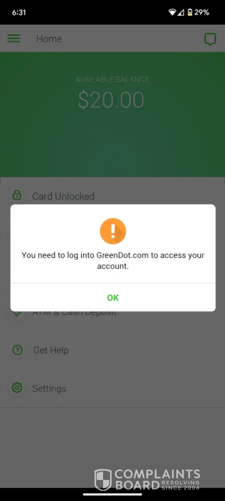 Not letting me access my account keeps saying access on Green Dot.com please fix it