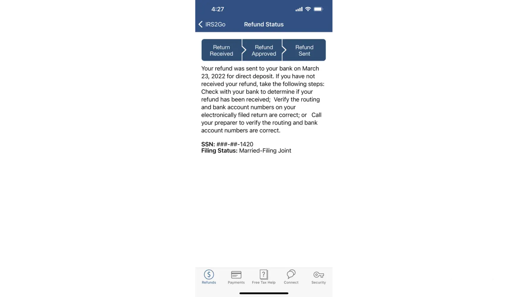 Desired outcome: Please send my Federal Tax refund of $1,327.00 & I would like quick response!