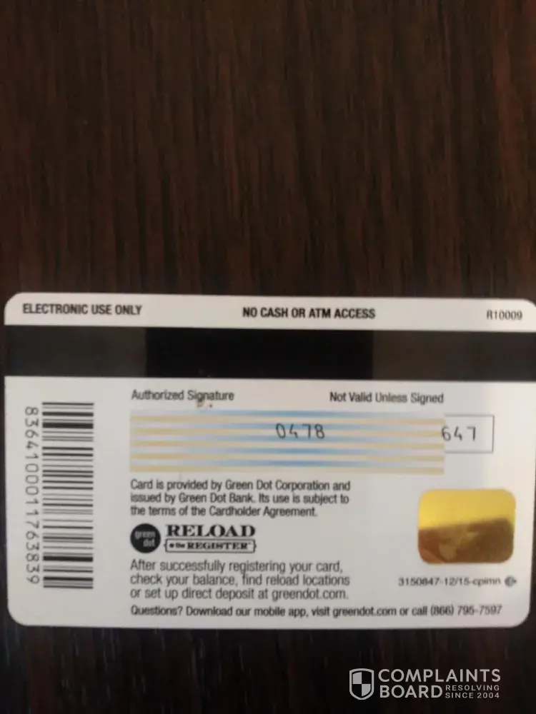 I spoke to someone at green dot my case# SF38749714 and I report it to green dot and she told me to send her the copy of the receipt and card.