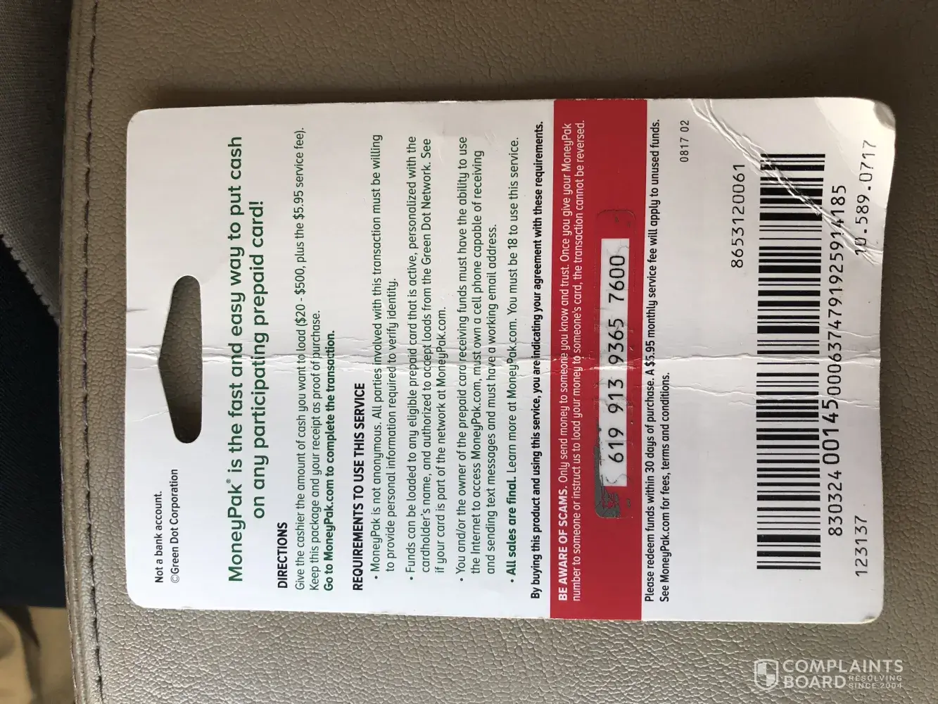 On 10/1/2018 I purchased (2) MoneyPak cards the pictures provided is the card I tried unsuccessfully loading to my bank debit card I filled out the form for the refund and the request was granted and 3 weeks later can neither call the customer service number provided or send an email which is REALLY inconvenient to the customers... if nothing is done within the next 2 weeks I'll be forced to take legal action against the company for theft of my funds