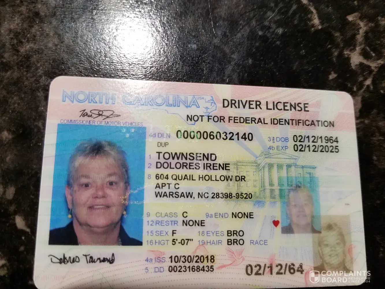 Yes this is my new address 604 Quail Hollow Drive apartment C Warsaw 28398 this is pictures of my new LICENCES front and back .And I would really appreciate it if you would add my $115.and some change back on my card.I have done everything that i can and sent pictures after pictures and i need my money back please.Because i don't have money to put on my card and then you going to block my new card that you send me and then turn around and send me another card that's not blocked but why would you even think that I would put my money on that card when I can't even get my money off of the one that you have blocked, makes no sense to me whatsoever.I am in need of my money that is on that blocked card.I have absolutely nothing to my name.In Jesus name I pray.