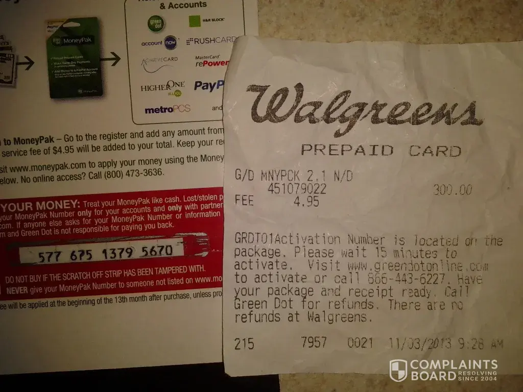I recently went to Walgreens to purchase a Green Dot Money Pak card for $100.00.