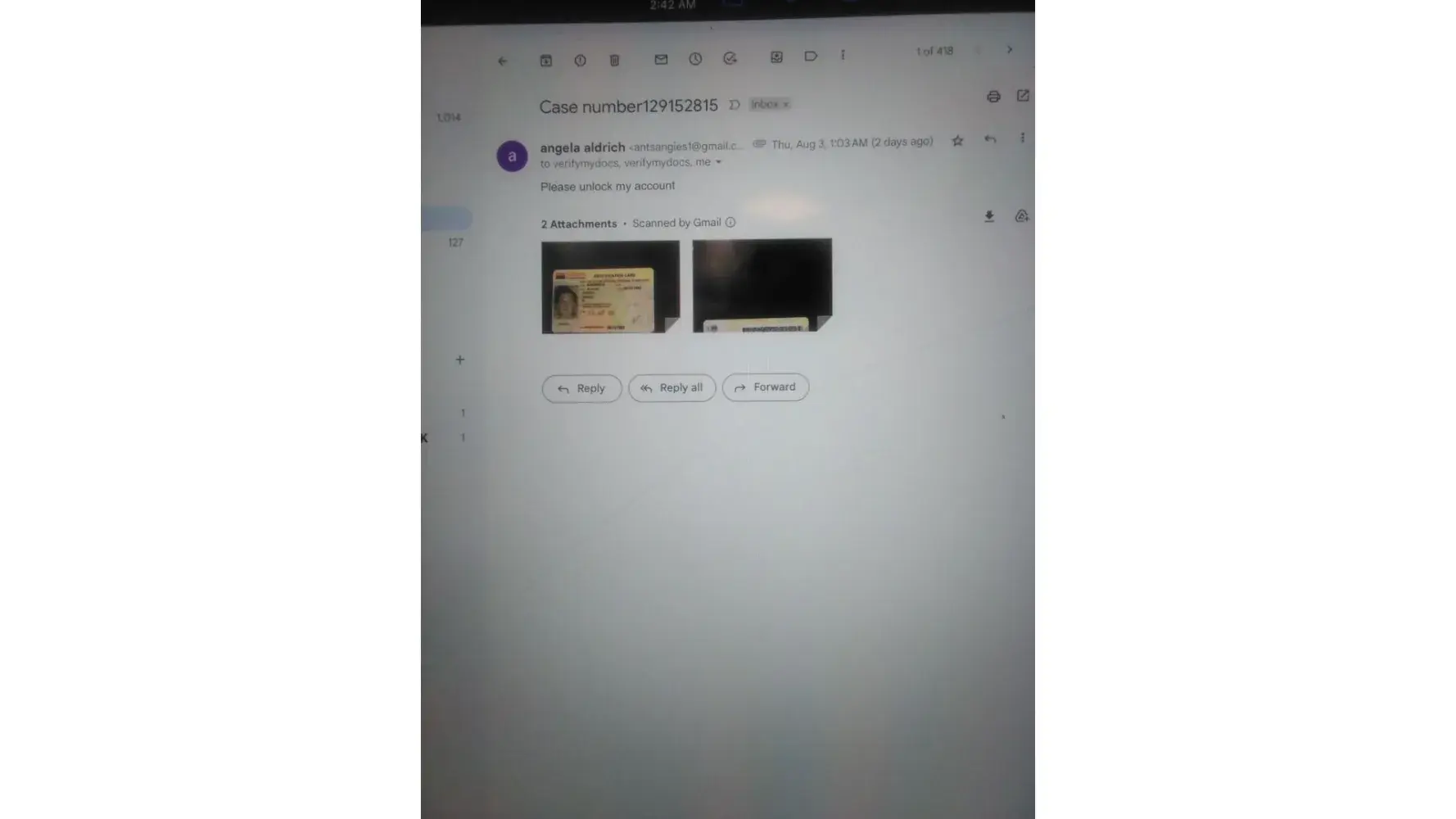 On July 31st, August 1st and August 3rd. I re submitted my I.D. card to verify my identity.