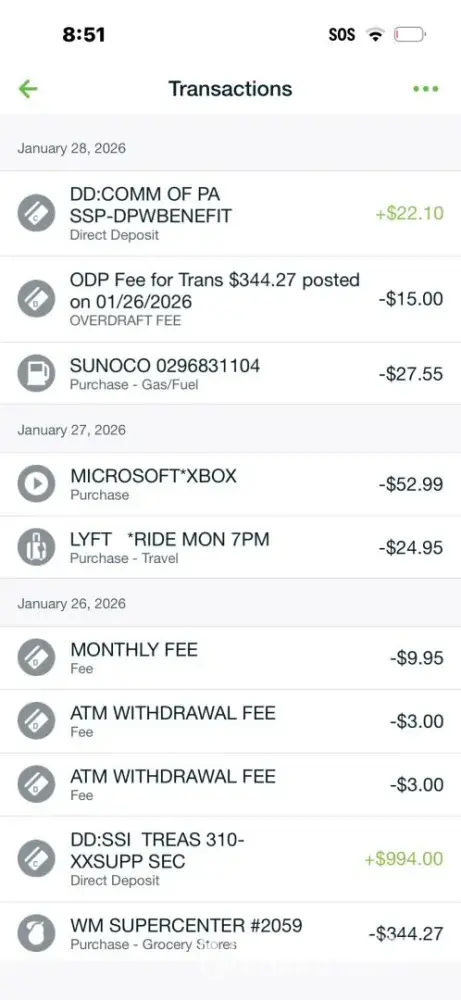 where my money‘s been going I’m on Social Security disability DoorDash I made a purchase and they couldn’t deliver because of the weather and they refunded my money. It was on there and I didn’t get it. There is Walmart charges on there for $300 I didn’t even do.