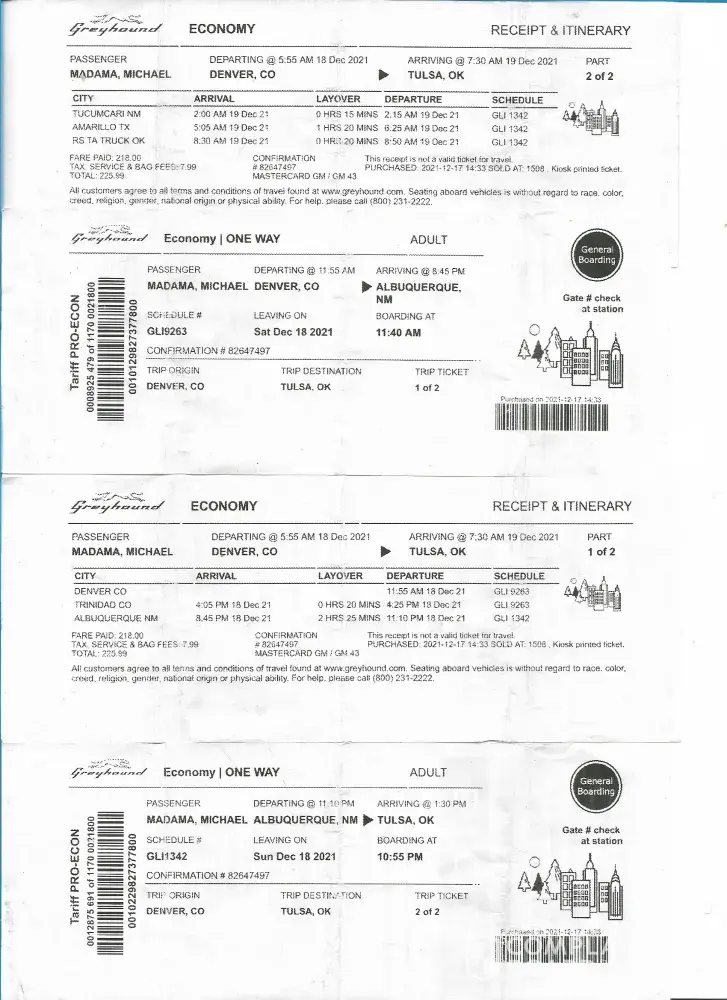 Greyhound Lines Booked and paid 2 times for rojund trip ticket from Mt,. Vernon, WA to Olympia, WA 112/17/2001 and 12/18/2021 return 12/20/2021