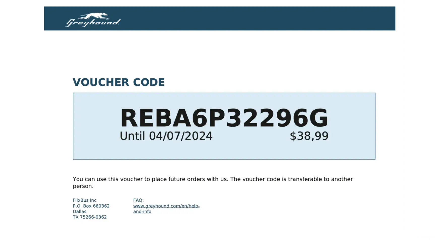 Desired outcome: Refund the US$139 and they can keep the voucher because I have no intention of using Greyhound again.