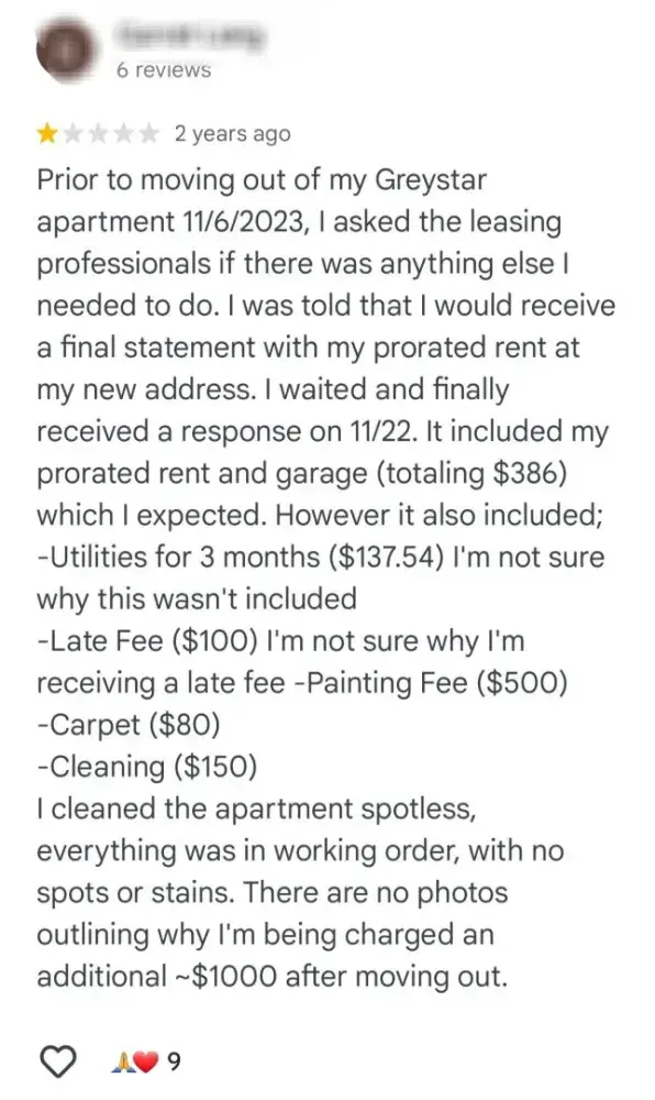 Read full complaint and 1 commentGreystar - poor management - tenant lives at risk!