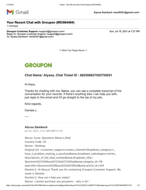 A den of thieves is what Groupon is. The customer service email is no longer valid. Can't get a new email without an account to log into . This is some seriously underhanded BS.