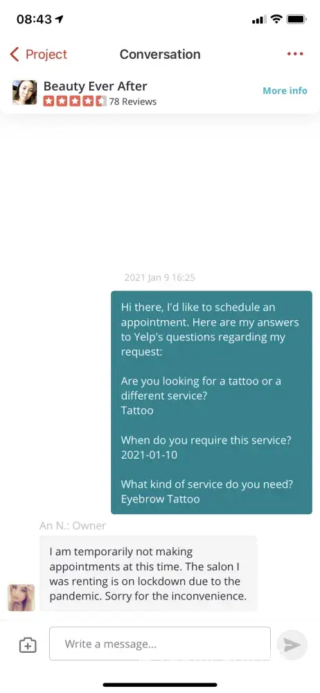 Below is the screenshot of the merchant Groupon I purchased, and as you can see the time it was when I asked the company about making an appointment and the response from them saying they are closed due to Covid. This is when I asked for a refund. Not because I changed my mind but because they can't provide the service their Groupon indicates it can.