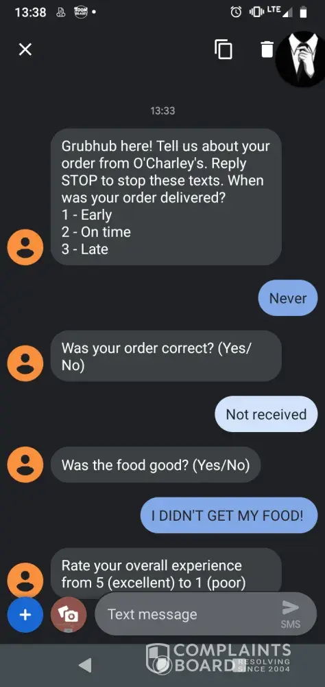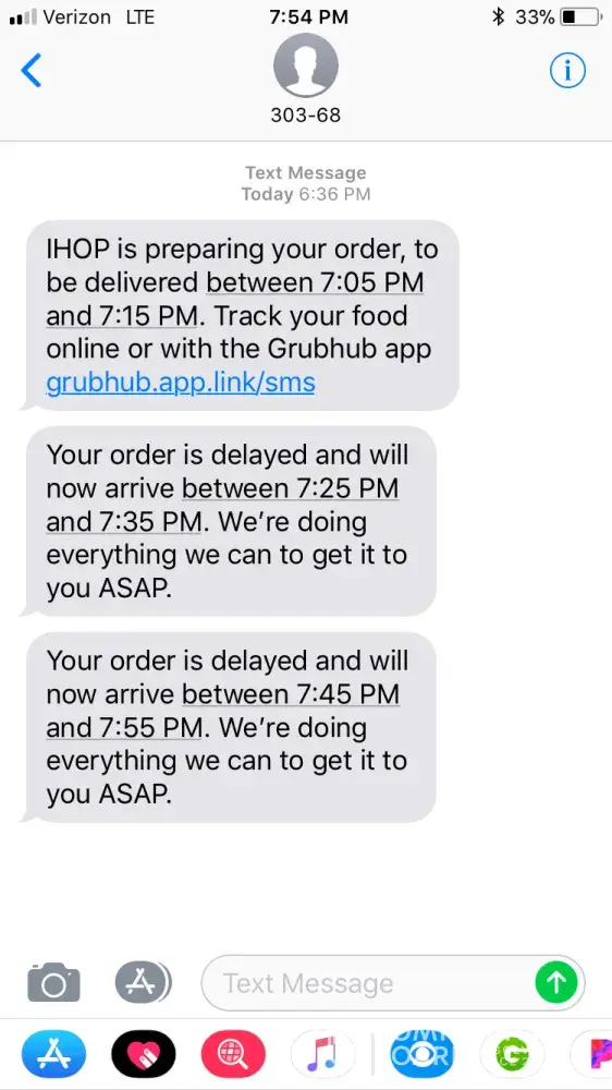 Then they had the nerve to send me a text wanting to know how my food was. Ugh. NEVER AGAIN.