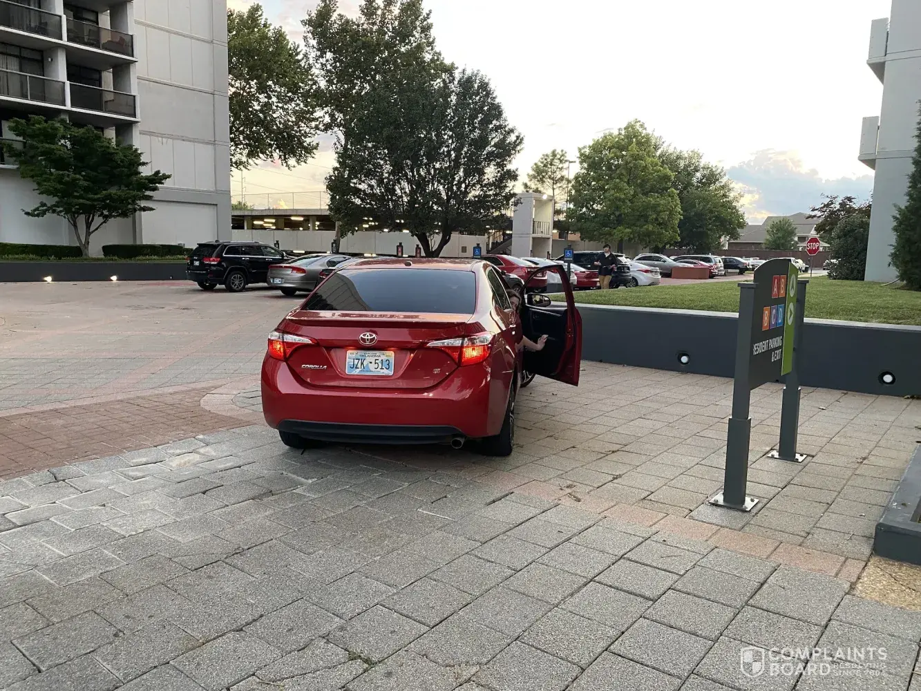 Tulsa delivery to 450 W 7th St Tulsa OK t approximately 8:15pm on 8/14/21 drive in a red Toyota Corolla tag number JZK-513 parked in a No Parking zone across the entry drive on a sidewalk that can not bear the weight of an auto. I am a director on the property and I went outside and told him he couldn't park there and told him to move his car but he blatantly ignored me. I then again instructed the driver to move the vehicle but he refused. I called the security guard and while I was gone he told one of our employees I was crazy. Our employee then told him I was correct he needed to move his car. Our employee is a witness to the incident.
