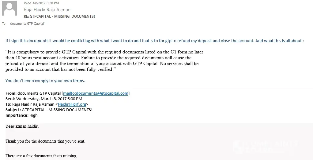 The fraudster merchant GTPcapital is asking for another £20, 000 aside from the £40, 000 they already have in my platform account