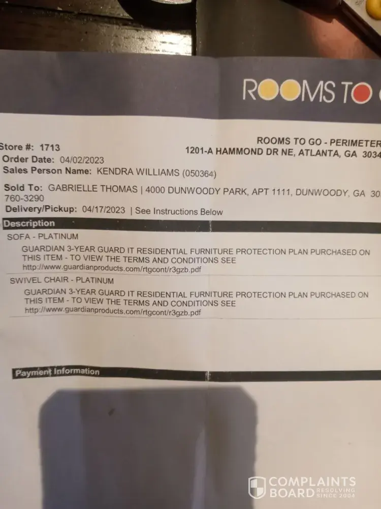protection purchased on 04/02/2023 at rooms to go perimeter. 120 A Hammond Dr NE Atlanta, Ga 30346