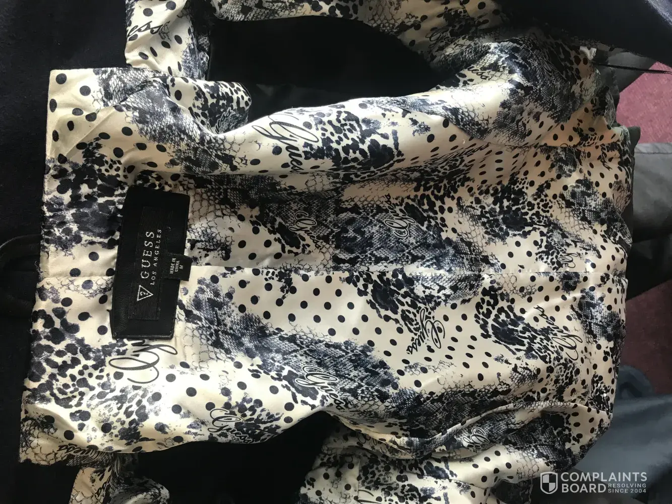 last night we went out for dinner my wife decided to wear this item MUCH TO HER SURPRISE this is what she found one off her jackets in terrible condition she spends good money on clothing would not expect this to happening to a guess item