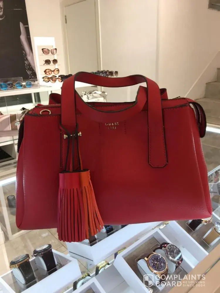 my wife is a frequent shopper at guess stores she has purchased many guess items over the years such as bags, watches, jeans, tops, shoes jackets and never has never had a problem until now all her items are in boxes or covered over