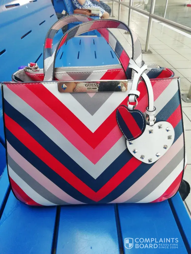 My husband bought this Guess handbag when we were on an NCL cruise last December in the in-board cruise shop. It was the Norwegian Jewel going around Australia and mostly New Zealand. He bought it for me as a special present. I used it for the first time this May 2018. It slipped from the clip locks the first time I used it but hoped it was a one off. This has been happening frequently since I first used it. In addition and more importantly, last week, the rivets on one side of the handle broke away from the main body and has now made it ‘ unfit for purpose ‘. I will post a photo of the of handbag.