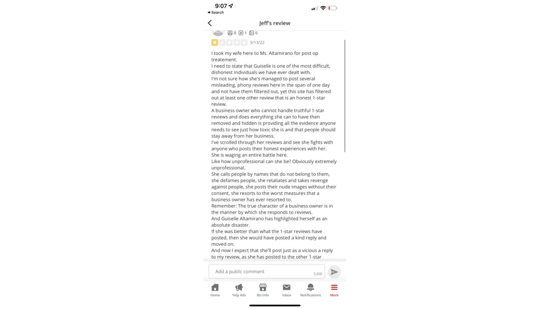 And when you look at her Yelp page, you'll see several PHONY "5-star" reviews. These are FAKE reviews that Guisselle posted herself, under PHONY accounts, in order to mislead potential customers and lure them to come spend their hard-earned money with her, under false circumstances.