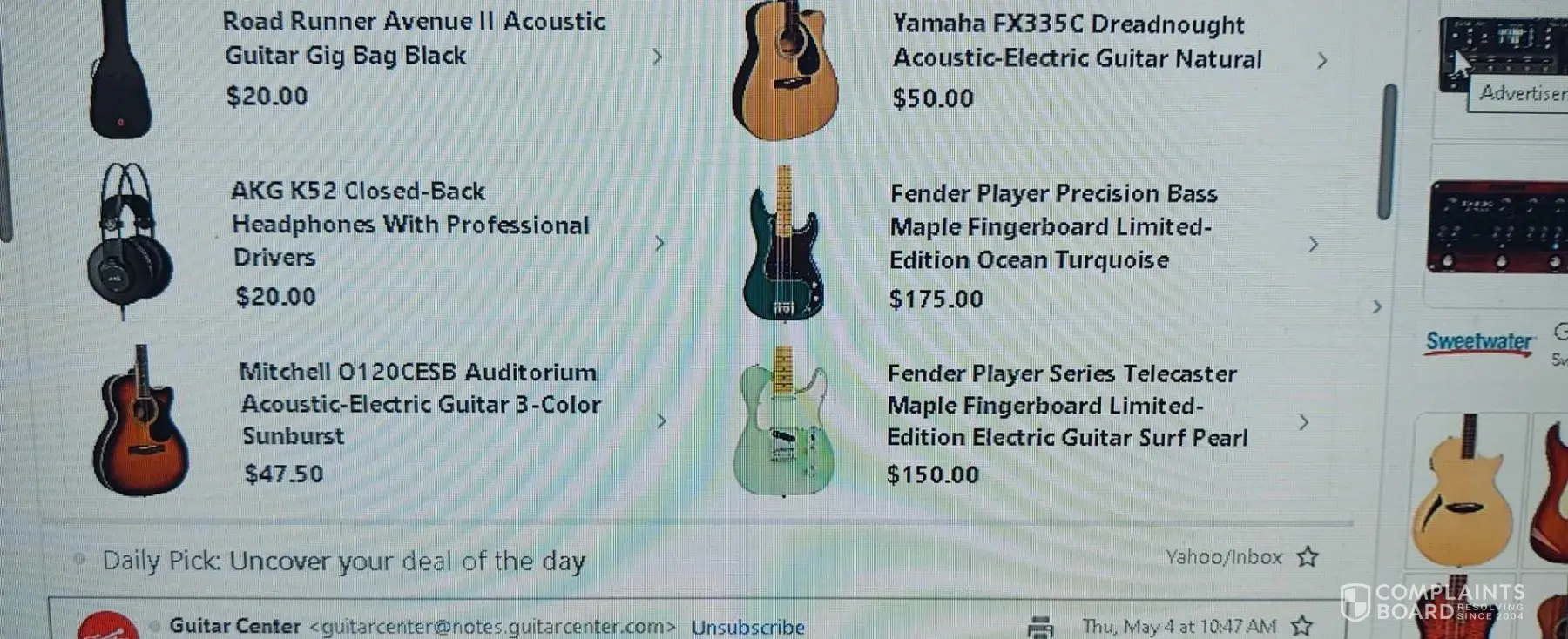 I had bought a Universal Audio interface to ay and record guitar on my computer. After awhile this interface would be kicked out of the recording program and I contacted UA for help. They asked for me to run some kind of diagnostics that made my computer crash. Toom. ovwr a month to get them. yo resolve my issue and had to refund me after fighting with me. I was.in an email loop whrre I was able. to read the comment of the tech chief Dan Cohen in which he tried to convince his supervisor that I was talking badly about guitar center and UA. Weird the lies people will tell to save their reputation, over a 160$ product. Well, I got another interface and after awhile the problem starrd again and I called GTR Cntr for some help. This lady call me back, listens to my. story intently and asks what it is Gtr cntr can do to make evrything ok. I. dodnt know,. I have a fee. thousand in my computer for home recording and I didnt want to lose it. She recommended that I go to the Geek Squad to see wht. was wrong and if gtr cntr could help. So, I take it over, drop it off, and the Best Buy guy says its $150 to doagnose the. Issue. I tried to call her back for an ok in the cost, but she didnt answer or call me. Within the time. It took to fiill. Ojt papeework. She cas the next day and tells. Me that theres nothing she can do about my problem. I tell her I took it to best buy, at her request, and its. Gonna cost 150. She says well, at least. Its. Gonna get fixed. I told her it was her idea to have it checked oht and she says. That she would tell anyone to go there to have it checked.