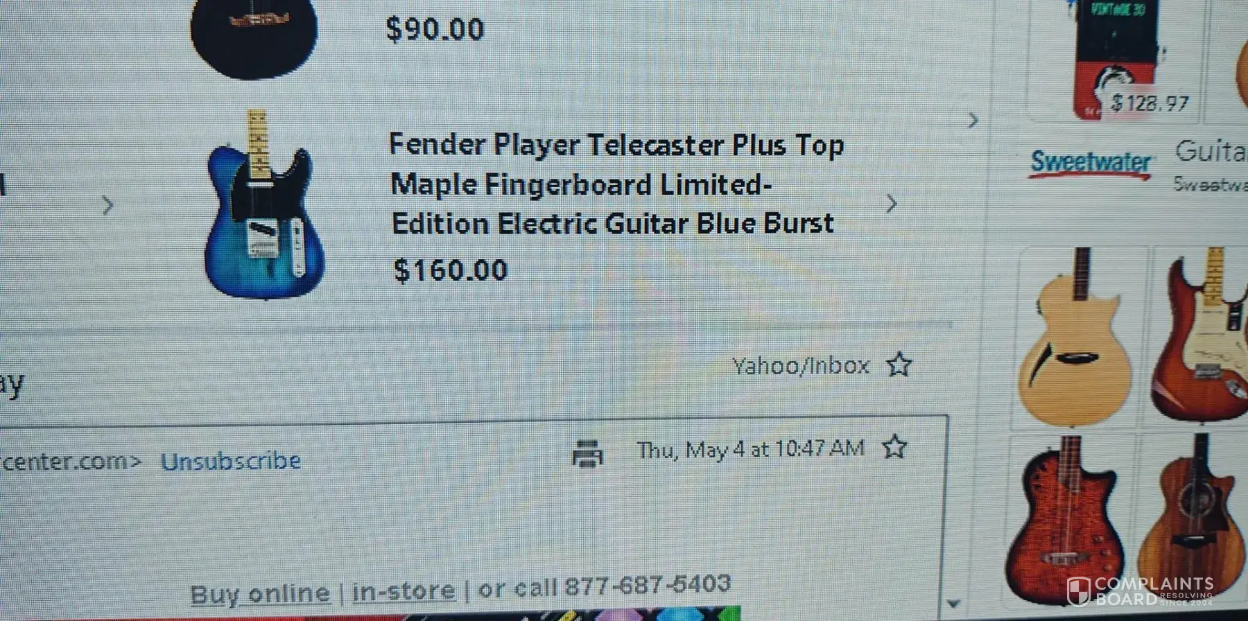 Back to Guitar Center Orlando Florida the outcome was ugly I purchased a guitar for the general manager said it was a deal wasn't a good deal corporate never call me back spending $2,000 plus on the guitar should be a happy day in your life I get so mad every time I see that guitar I sold it so I didn't have to be reminded of it in all the sad memories a box of my life Guitar Center offer to buy it back not even a month later for $700 I took a beating on it anyhow just to get rid of it all I can say is buyer beware don't make the same mistake I did I listen to all the lies Dayton make money off commission they will tell you anything you want to hear to sell it to you at the purchase is made they don't even wanna know you