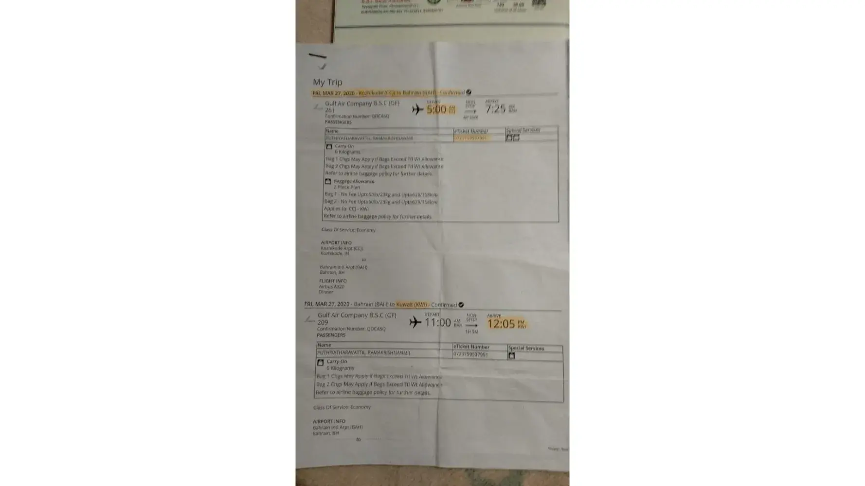 Flight Nos: Paris to Bahrain GF 18, Bahrain to Mum GF 56
