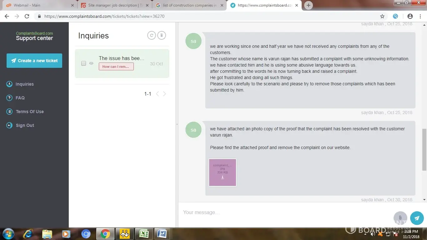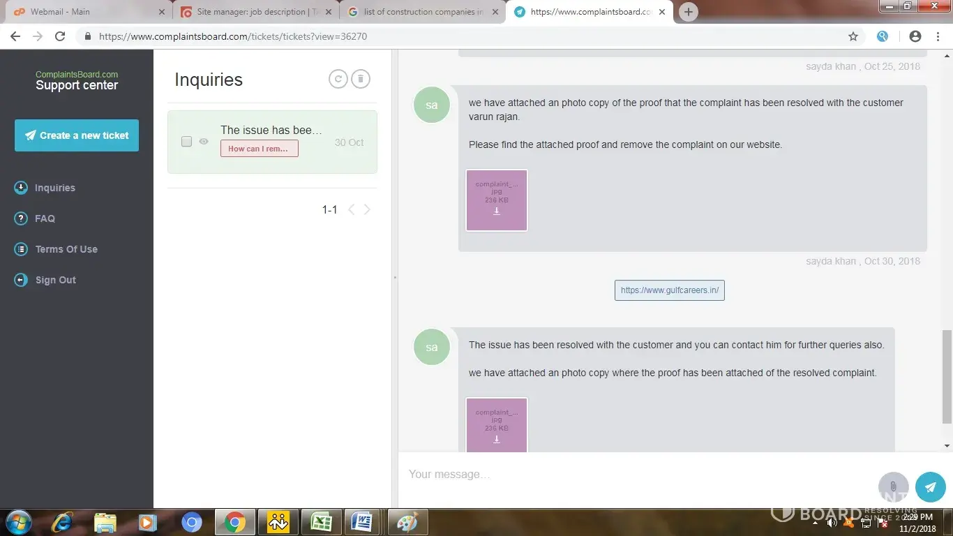 we do have proof of the attachments where the candidate has been emailed us that the issue has been resolved and the proof of complaint board where they are not responding to us.
