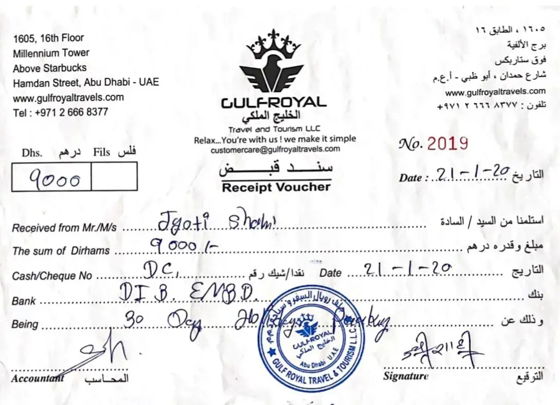 Scam service provided by Gulf Royal Travels & Tourism- Thieves
