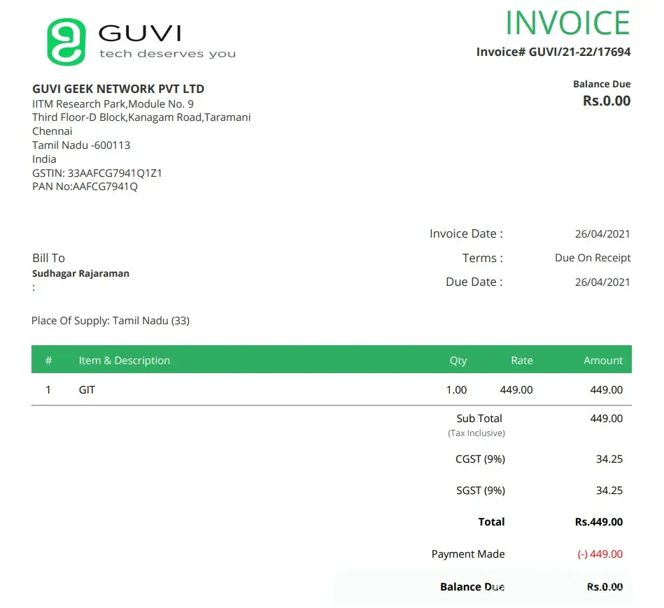 We found clear and detailed contact information for Guvi Geek Network. The company provides a physical address, 3 phone numbers, and 2 emails, as well as 3 social media accounts. This demonstrates a commitment to customer service and transparency, which is a positive sign for building trust with customers.