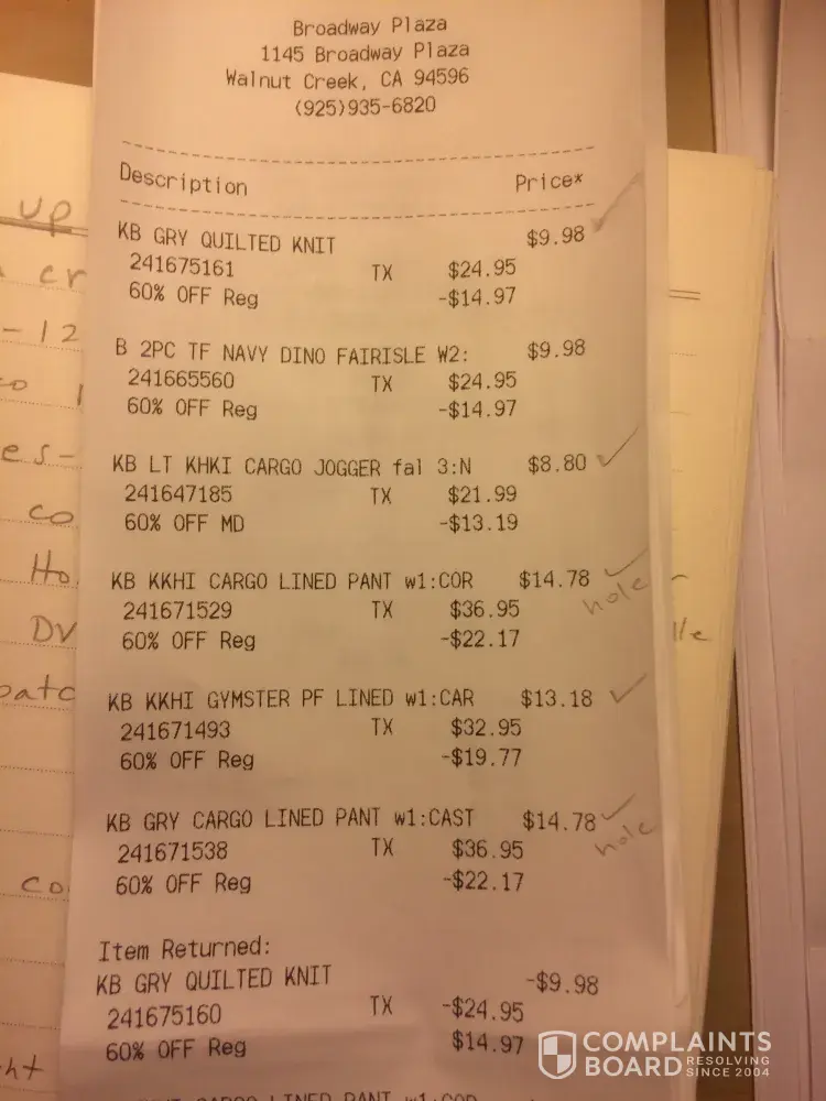 I purchased 6 pairs of pants for my 9 year old for Christmas on 12/23/16. Four of the pairs are still fine, but both of the Cargo Lined Pants (that were the most expensive of my purchase @ $14.78 each) that I purchased less than 4 months ago have already split. On the Gray pant (Item #[protected]), the knee split open. On the Khaki pant (Item #[protected]), the crotch split open while my son was at school, and he didn't have any other pants available to him.