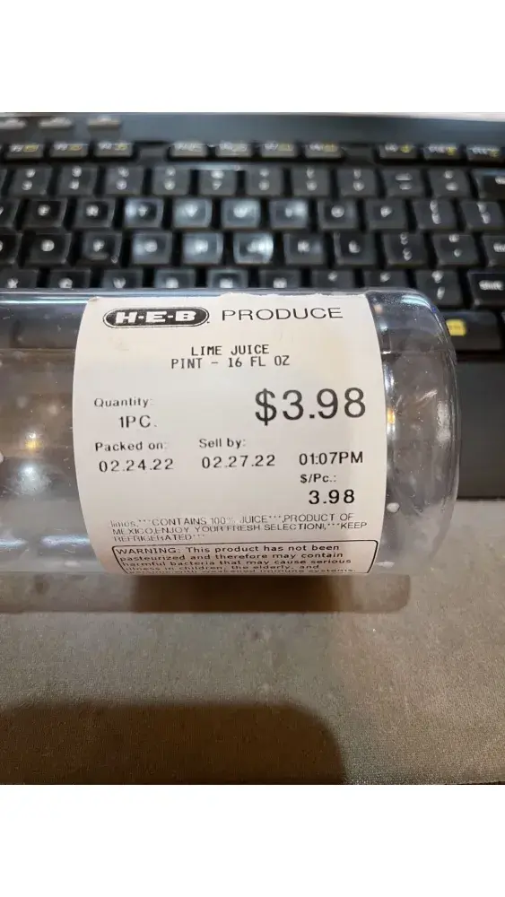 Desired outcome: I want my HEB fresh squeezed lime juice back in quarts and pints.