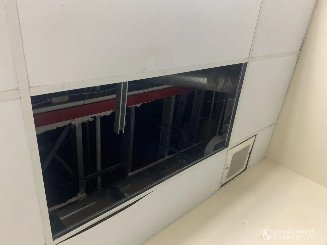Read full complaintRoofing in heb bathroom fell on top of head and shoulder