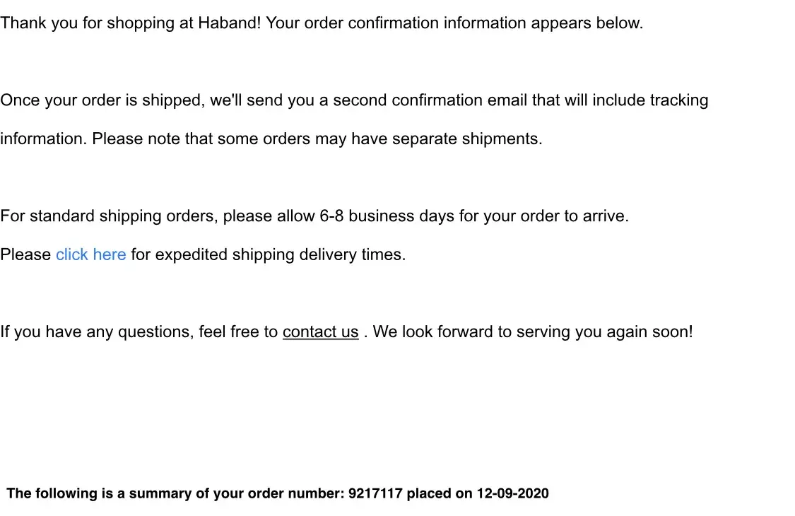 Overall, my experience with Haband has been extremely disappointing. I will not be doing business with them again and would not recommend them to anyone. It's frustrating to deal with a company that doesn't seem to care about their customers or their orders.