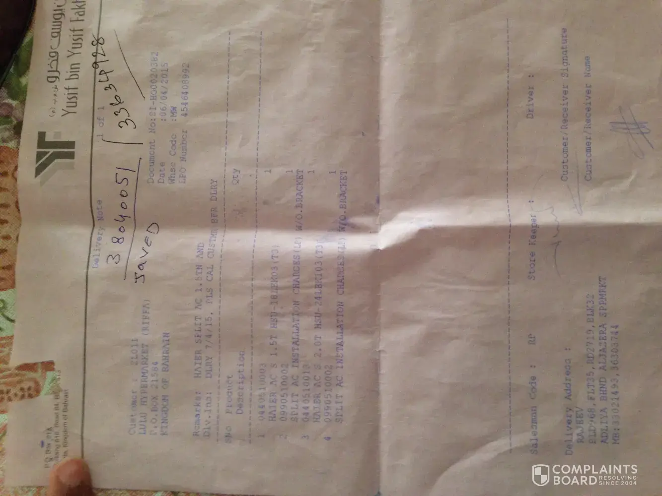 Purchased a 1.5ton split ac, brand Haier, from Lulu on 06/04/2015. There has been constant water leakage from the inside unit from the first week. There have been 6 teams of service men trying to fix the issue to no success. The person Mr. Anil in the service centre of Yousif bin Yousif fakhro is adamant that he will not change the unit. My floor and wall is getting damaged because of the constant water dripping. Every time I call and complaint they just send some service person who say openly that everything that has to be done is done but the company is adamant on not providing a new ac. I am feeling cheated.