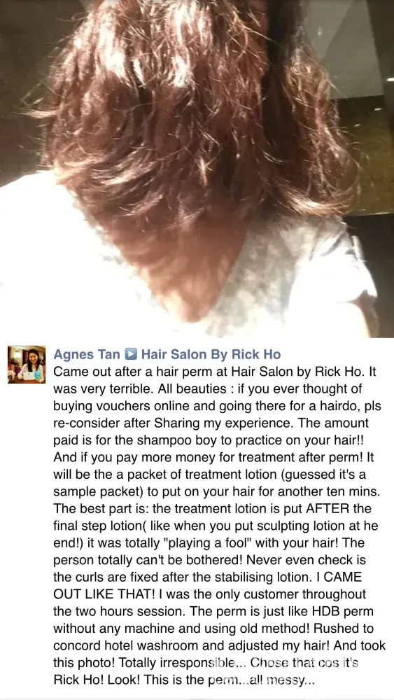 PEOPLE, PLEASE DON'T BUY ANY VOUCHERS FROM THIS SALON "HAIR SALON BY RICK HO" (CONCORDE HOTEL). YOU'RE JUST GONNA WASTED YOU'RE MONEY AND GET DISAPPOINTED.