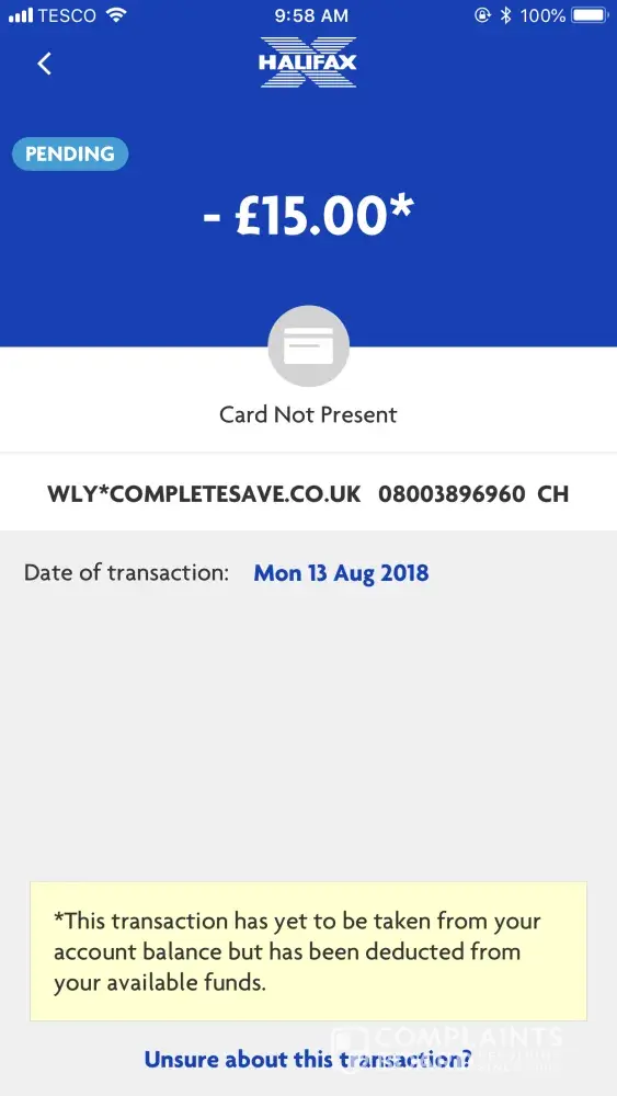 5/01/2016. Complatesave.co.uk they take money from my account without my confirmation. I want my money back. Thanks