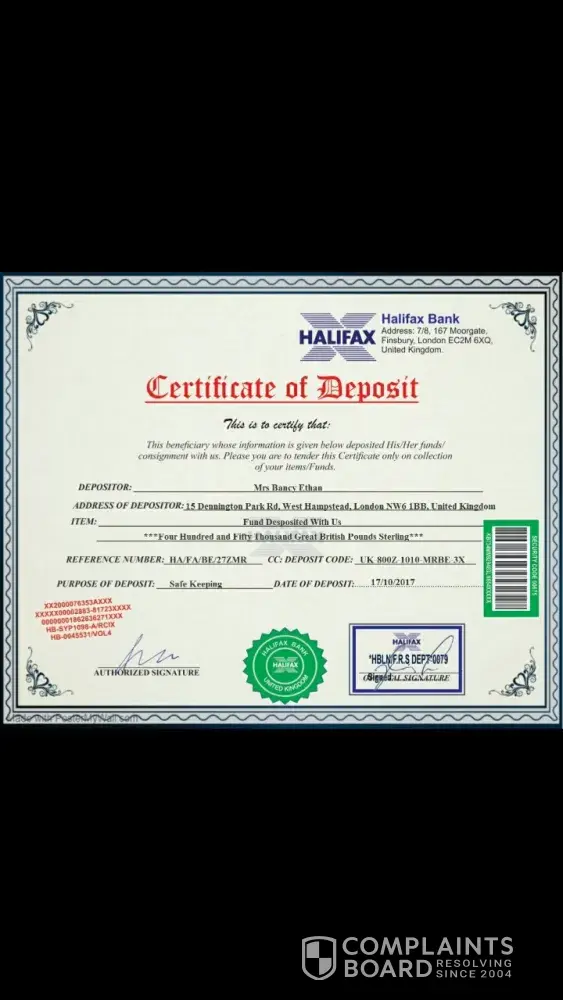 We have issued your new winning cheque, we have processed it, we send it to HALIFAX BANK FOR WIRE TRANSFER INTO YOUR ACCOUNT.
