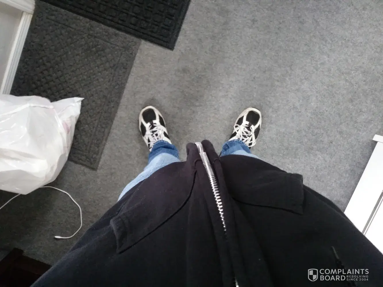 I am enclosing 3 photos of the product and the defect outcome. I am a medium sized, slim adult male, but as you can see by the one photo, it looks as though I have an extended stomach due to the contortion of the fabric surrounding zipper area...