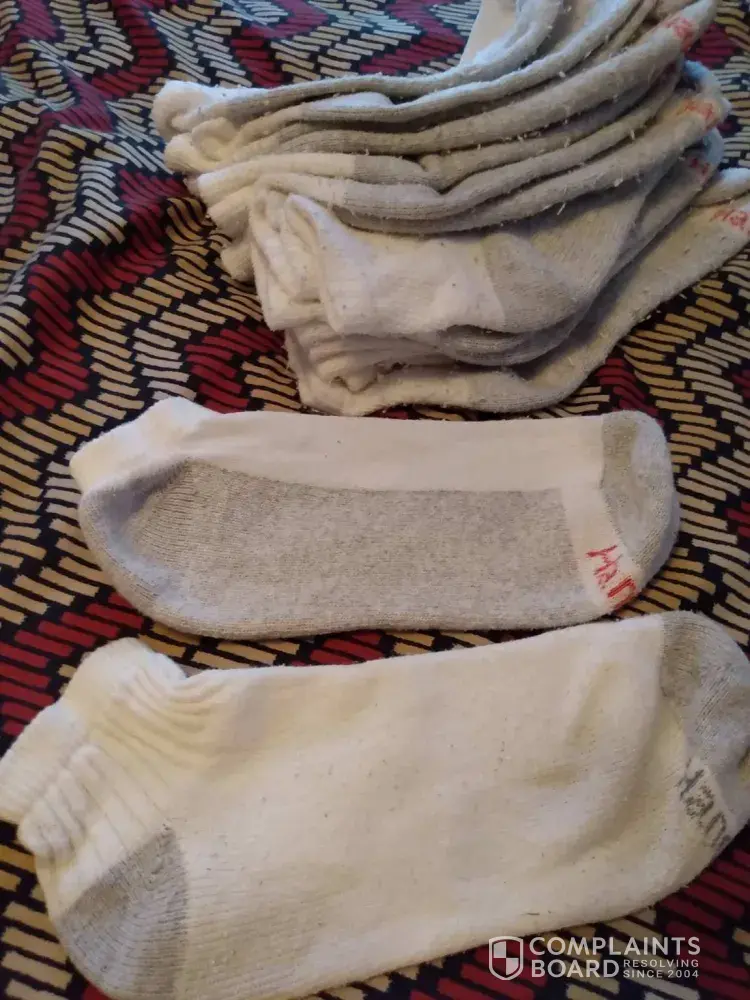 I have been buying Hanes socks for years, up until my last purchase I've had nothing but good service, I purchased I believe a 12-pack something it like it was oversized pack each and every one of the socks has frayed to have like little balls all over 100% of the socks I've had the same washer same detergent same person doing my laundry for the last 10 years something in the socks is defective. I do believe compensation is in order and if I can I will send pictures along with the statement thank you