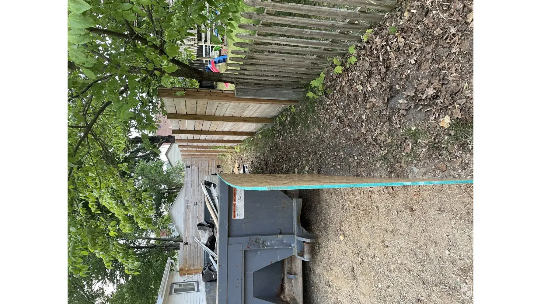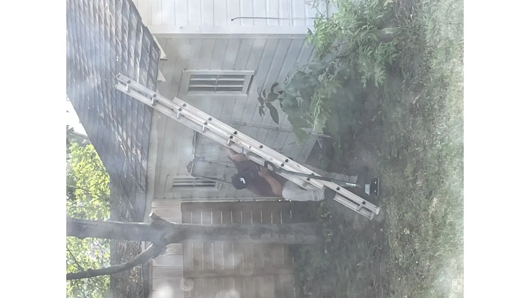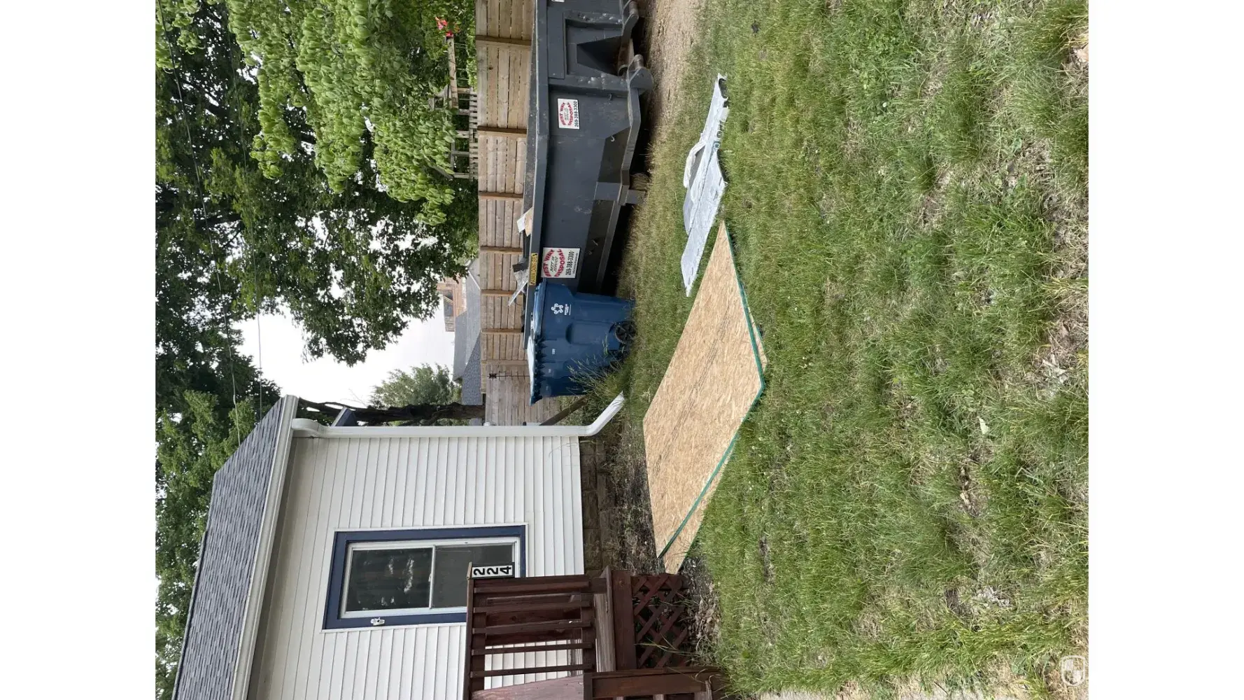 It's now Wednesday morning, & I hear my ring motion notification going off alot. I see someone walking around the now dropped off dumpster in my driveway & throw myself together to see why someone is creeping around my yard. I go outside & theres one man with his van parked out front. He asked me about my service but asked me if I booked through a different company. I asked, do you mean Hansons? & tell him that the materials havent been dropped off yet. He said he'd call his boss & see what's going on, but that he may be able to get started. He eventually set up his ladder in the backyard & proceeded to lean on the ladder, scroll on his phone, & hit a weed pen. (I know the difference between a nicotine & a weed pen. I don't judge him too harshly, but I think it's very unprofessional)