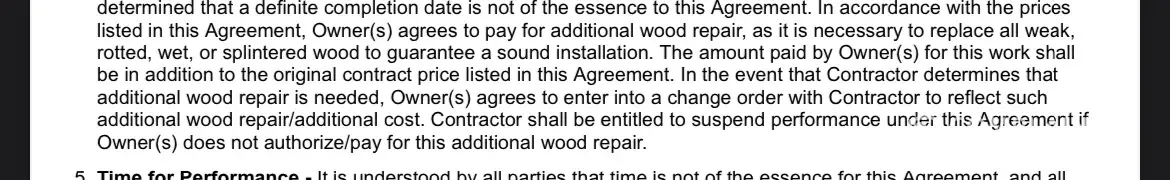 Materials eventually got delivered & once the roofs underlayment was exposed, I could see rotten wood. I stopped him when nailing plywood down & called the company on why materials are not here for those rotten spots that need replacing; & was told that they don't do that. No remedy for the situation.
