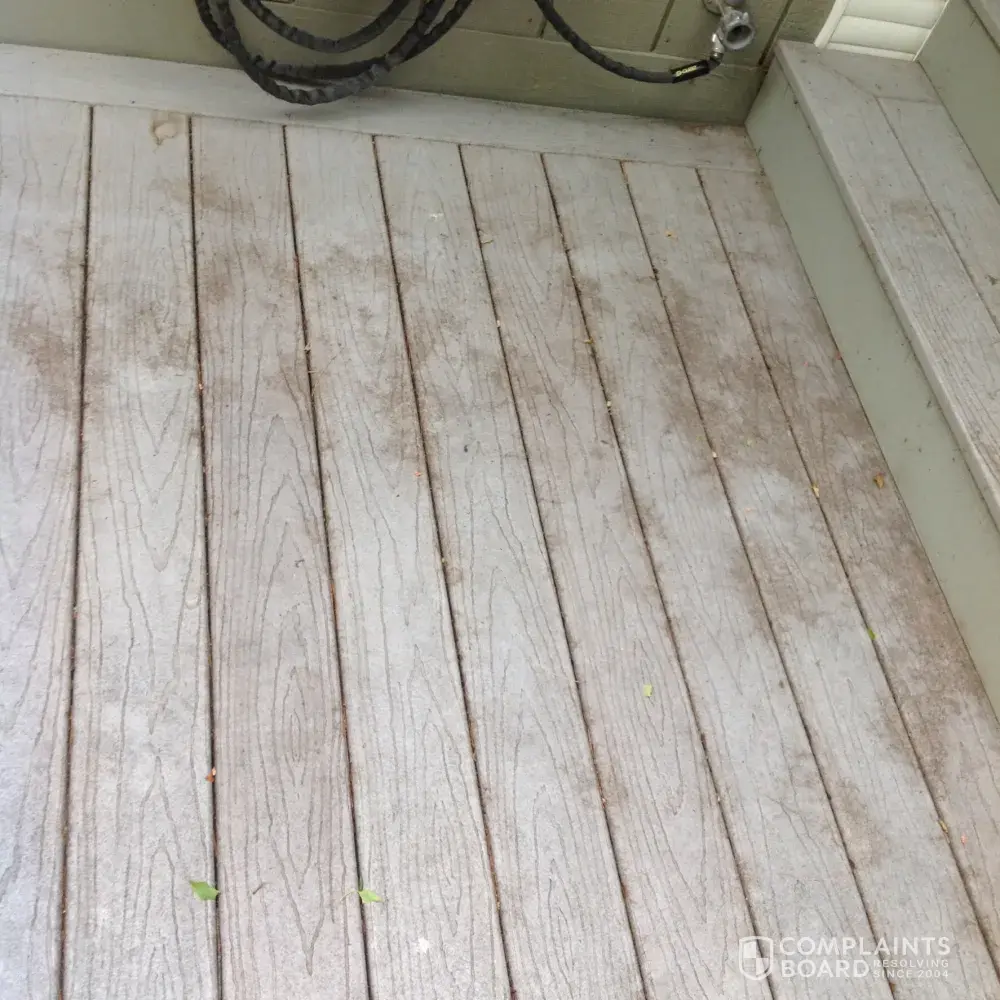 I had a new deck built less than one year ago. It now has stains which cannot be removed. I went to Lowes to find out how to clean it. Thus far I have spent over $200.00 for products which do not work.