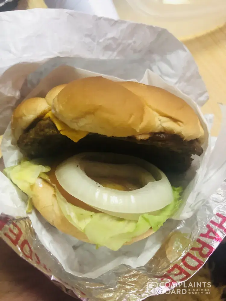 on 7/2/19 at 2:00pm; cheese combo with a sprite to drink. I did receive this which I opened to find the top of the bread on the sandwich was completely pulled apart, and could not be eaten, ( well without wondering why it was like this), I ask for qurley fries, they were so dried they could not be eaten either, but I did drink the sprite. I was hungry and really thirsty, so I did quench my thirst but not my hunger. I trashed the food and went home and ate a bake potatoe.