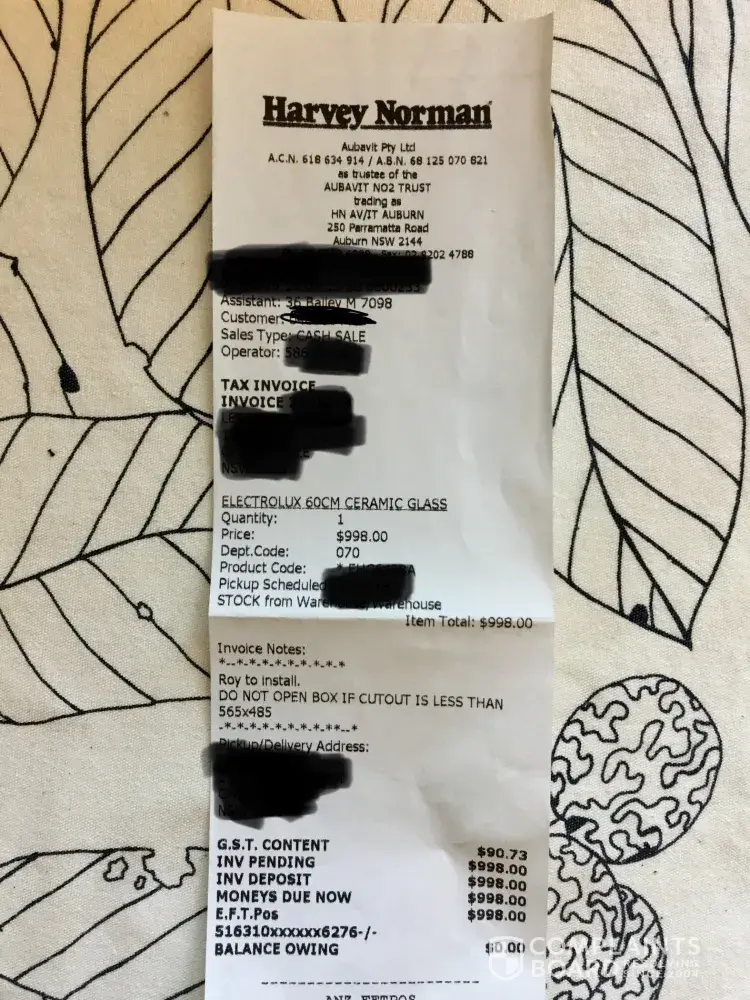 Called Harvey Norman and asked them to find me another contractor, but was told he was the only contractor they have or I have to pick it up and find a contractor by myself (I really don't want to waste my time driving there for the pick up which I could have done on the day I made the purchase). It's clear they were wearing the same shoes and protecting each other.