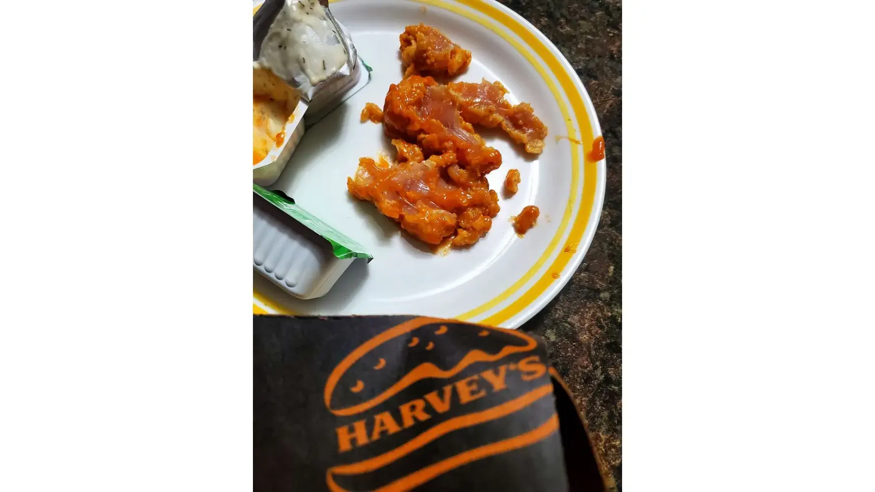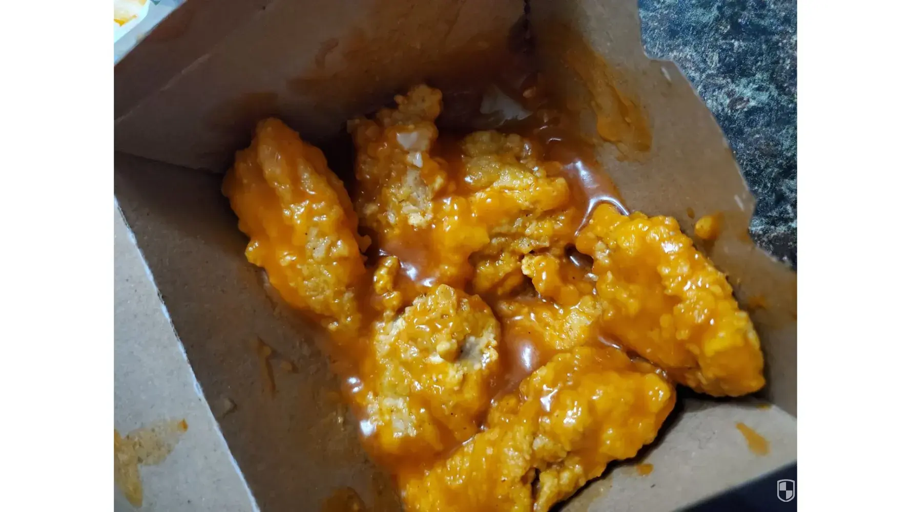 Last night, I ordered a large order. 6 chicken burgers, 12 piece Buffalo chicken nuggets, 3 egg sandwiches, and a breakfast wrap. This was meant for my family for a couple days of dinners. We ate the egg meals no problem, and I saved my 12 piece Buffalo chicken nuggets for the morning/lunch. (I am night shift) I took my chicken out to eat some before bed.