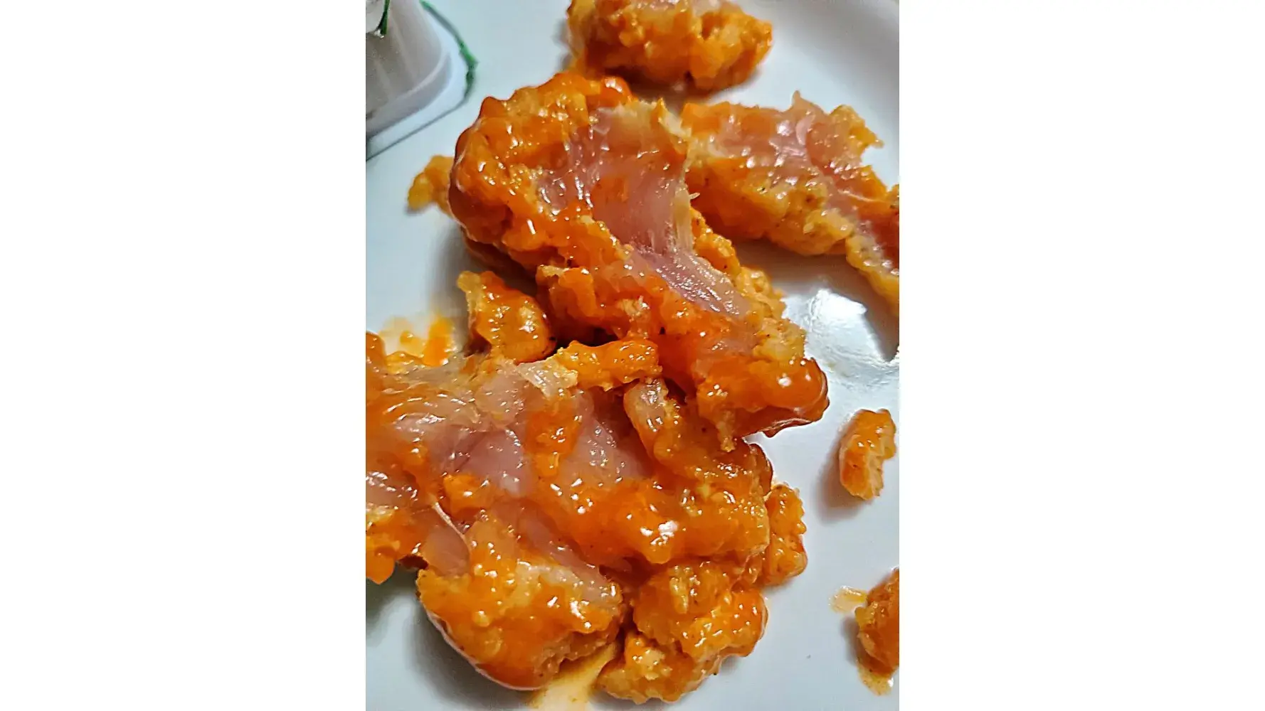 I took a bite. It was grotesquely chewy and tasted funny. I noticed when I picked the piece up that the batter was unusually Sloppy. I thought they included extra sauce and that was why it was soggy. I finished the piece, thinking I must have had a bad piece of chicken- the kind with gristle in it. I tried a second piece. Same sensation, maybe worse. I hastily swallowed that and chased it with a drink and then, puzzled, I took a third and ripped it open. To my ABSOLUTE shock and horror, the chicken was RAW. I am not taking about partially cooked. It was 100% raw all the way through. I have NEVER in my life received dangerous food before.