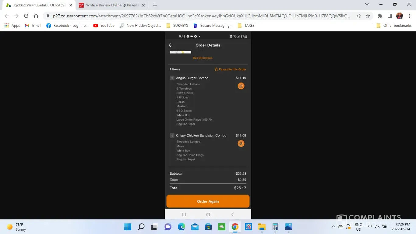 Read full complaintIncorrect order
