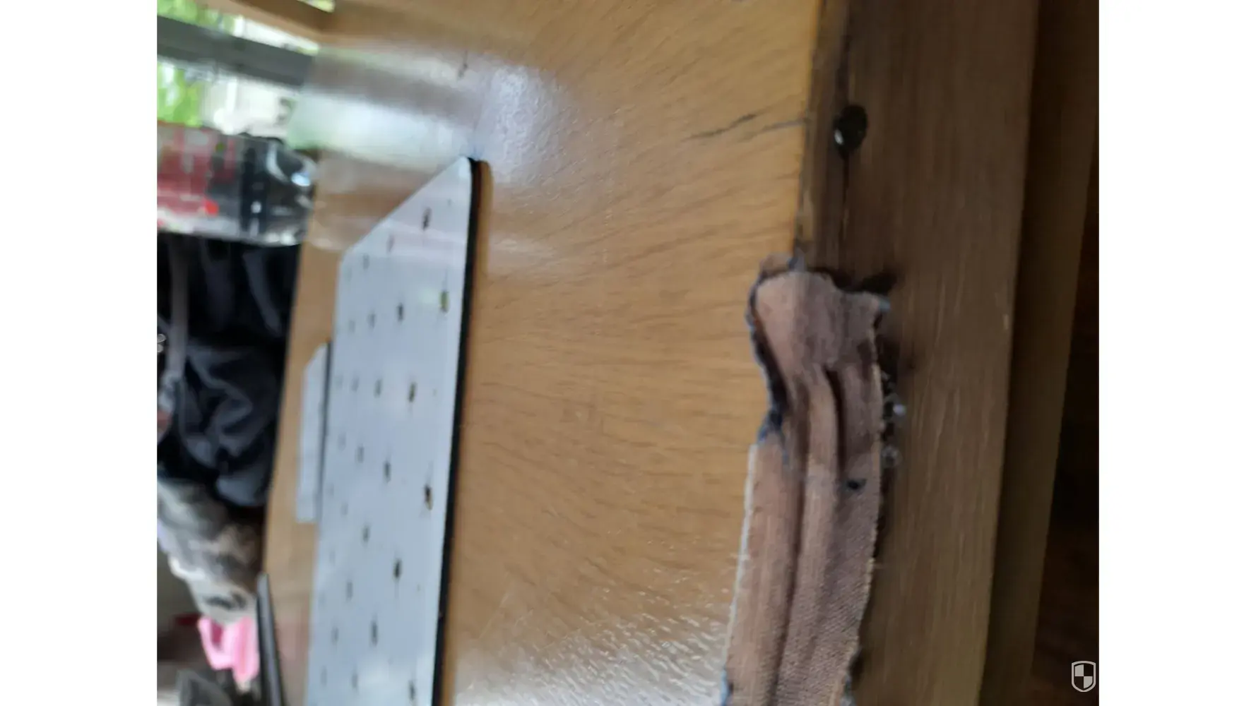 The dining table trim was falling off and had clearly been nailed/glued previously causing it to split with sharp edges. We reported this to reception. The TV unit Formica was split, peeling off and sharp. The carpet was heavily stained and dirty. The cupboard door under the sink was held together with duct tape and inside said cupboard the bin was broken. The higher kitchen cupboards also had splits in them. We stay with Haven every year and have done for quite a number of years and this is the first time we have had to complain about the accommodation. The reason we did not complain and ask to be moved is because we were travelling with an autistic child and any further upheaval would have been very distressing for him.