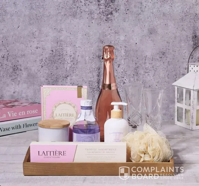 The basket looked absolutely nothing like advertised and they just give you an automated response about substitutions in the fine print however the subs are supposed to be of equal or higher value and these clearly were of lesser value. They offered a $69 refund for the missing bottle and balloon which I have yet to receive. Also when I went to give them a review on their website it would not allow me to do so which explains why their reviews are all 5 stars. I have reached out to product quality and damage control after dealing with a first level customer service agent and I’ll admit by the 15th email I was getting snarky but also using humor. I only want a full refund. The last email I received from someone in management told me to ‘get a life’.