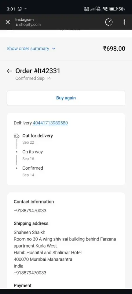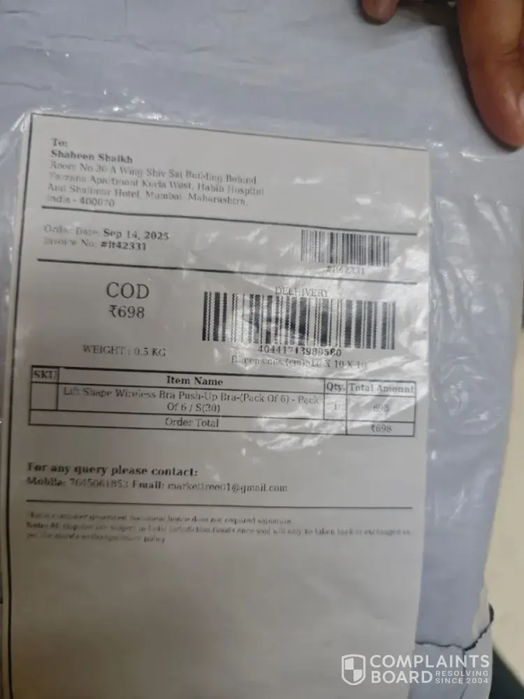 I am writing to bring to your attention that my recent order, Order No. 40441713989580, delivered on 22 September 2025, was incomplete. The item Lift Shape Wireless Push-Up Bra (Pack of 6) was missing from the package. I also request you to stop the payment to the seller, as this seems to be a case of fraud/spam.